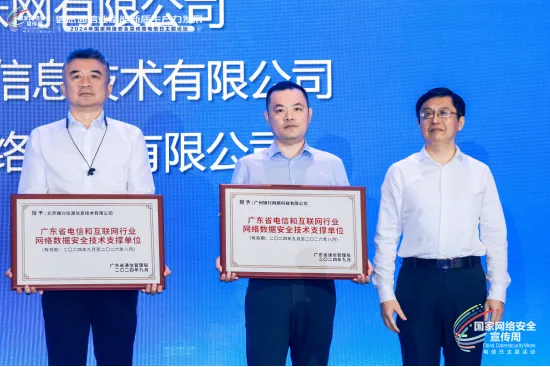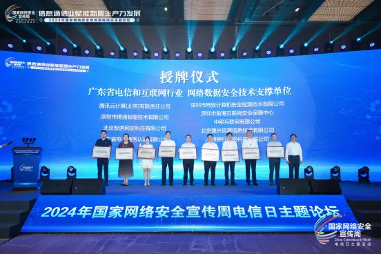 2024年9月11日 —— 在广东省通信管理局举办的国家网络安全宣传周电信日主题论坛上,广州锦行网络科技有限公司(简称“锦行科技”)代表上台接受“广东省电信和互联网行业网络数据安全技术支撑单位”牌匾。这一殊荣的获得,不仅体现了我们锦行科技在网络安全领域的专业实力,也标志着我司在广东省乃至全国网络数据安全建设中将扮演更加重要的角色。