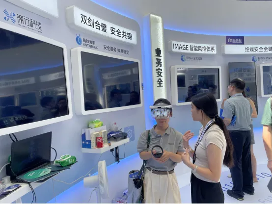 除此之外,锦行科技作为“安全平行切面联盟”成员单位之一携锦行“幻云”蜜罐,联动MR(增强现实技术)设备,亮相科技展览D区“未来安全实验室”-网络安全模块。通过四维动画演示,展示平行切面技术理念及基于安全切面技术融合锦行“幻云”蜜罐,通过系统化、动态化和智能化的方式,提升企业整体的安全防护水平,实现业务与安全的深度融合,以帮助用户有效应对数字化转型过程中出现的安全挑战。并在共同建设切面理念与产品生态的同时,助力数字化转型与可持续发展。